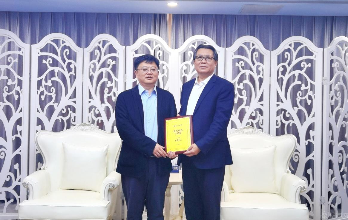會前,黨委副書記、校長張立峰與張勇東教授進行了親切交流,并為其頒發了北方科技大講堂紀念銘牌。